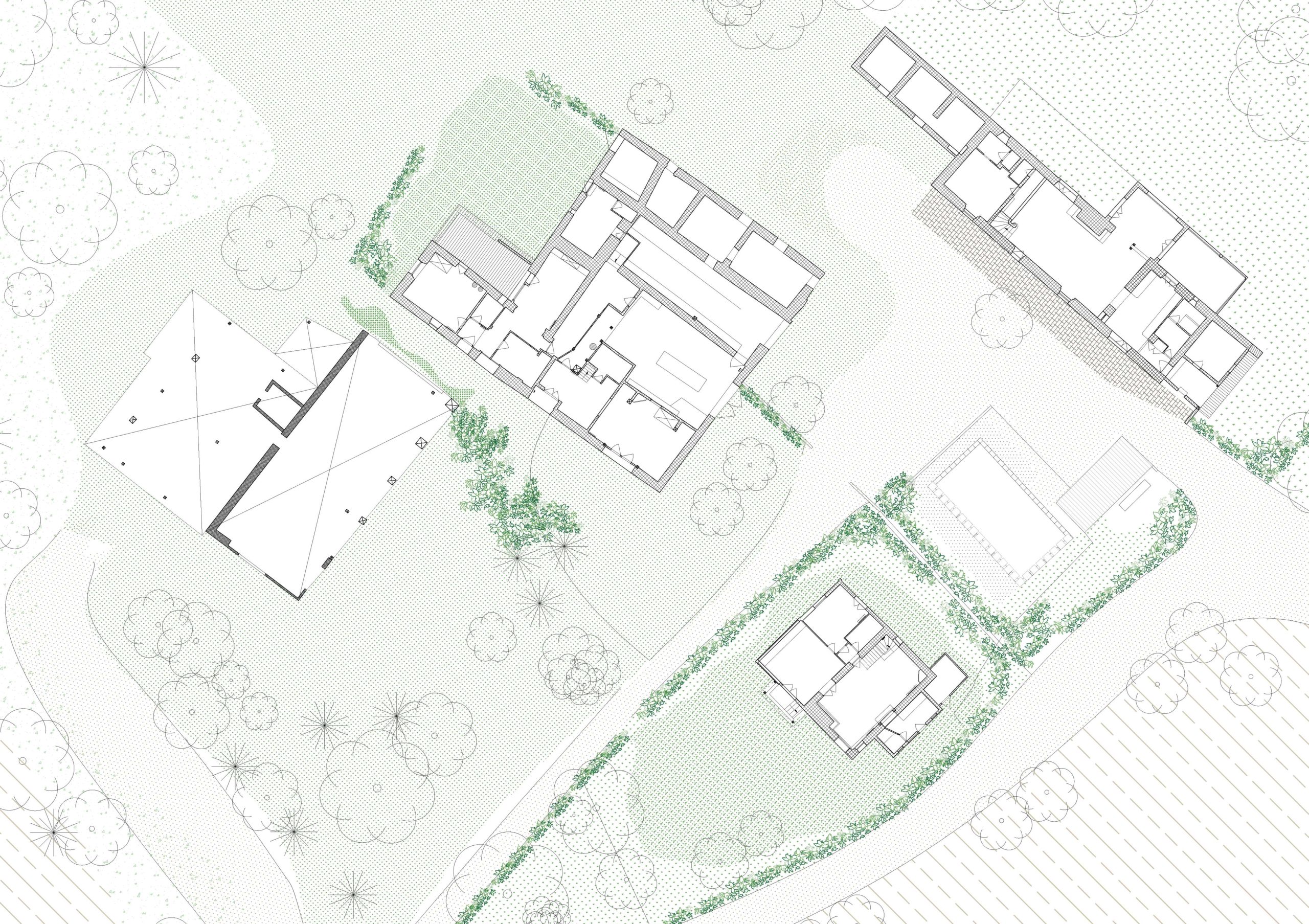 Ce lieu de vie collectif est né dans un hameau composé de corps bâtis hétérogènes et qui forme le cœur d’un terrain d’environ 12 hectares, boisé et traversé par un cours d’eau. Avec un programme bien ficelé par l’équipe de la Maingotière, l’étude de faisabilité a eu pour but de concevoir des espaces d’habitation et des ateliers d’activités (brasserie, confection de pain, transformation alimentaire et atelier floral) ainsi que des locaux ouverts au public. L’objectif a été d’accompagner la maîtrise d’ouvrage afin d’élaborer un carnet de route du projet sur plusieurs années. Nous l’avons donc accompagné dans une réflexion sur l’auto construction et l’éco construction – en dressant les pistes des ressources utilisables sur site et leur débouchés, et en renseignant sur certains procédés constructifs sobres et respectueux de l’environnement.